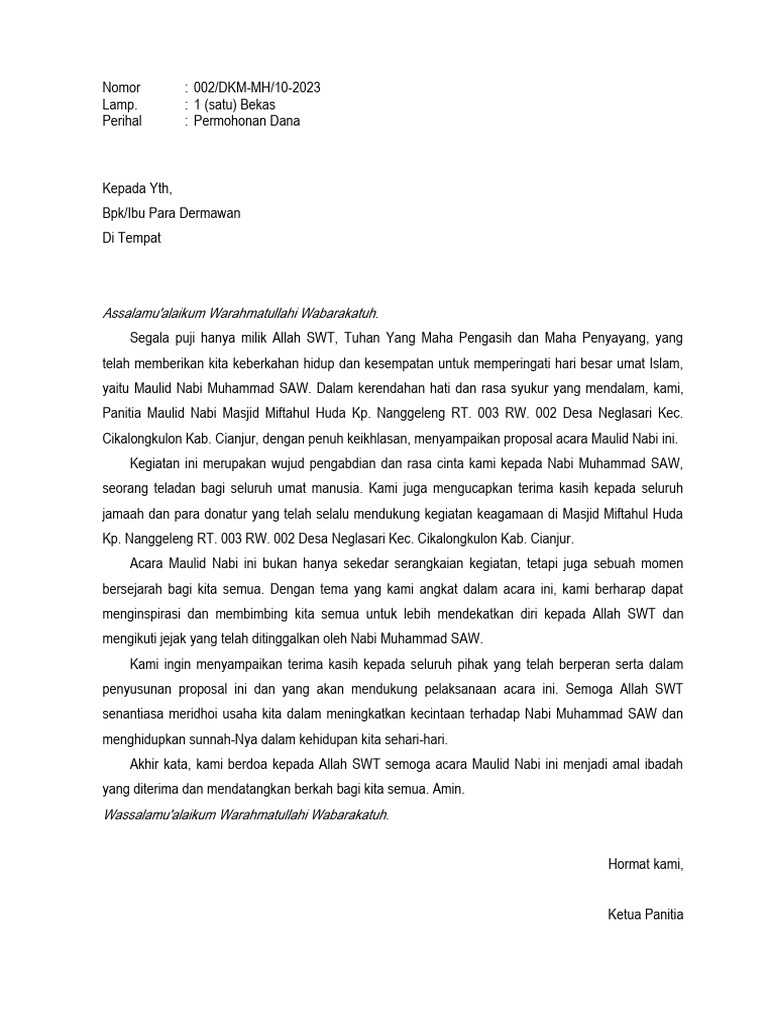 Demikianlah proposal kegiatan Maulid Nabi ini kami susun. Kami berharap proposal ini