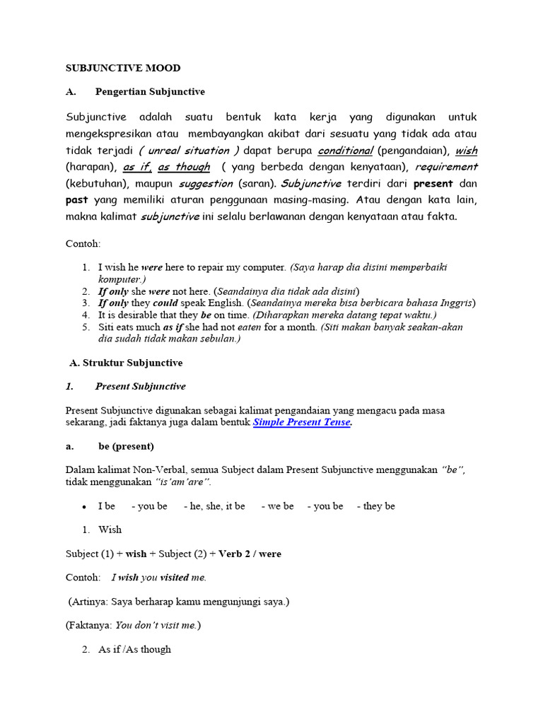 Subjunctive adalah suatu bentuk kata kerja yang digunakan untuk