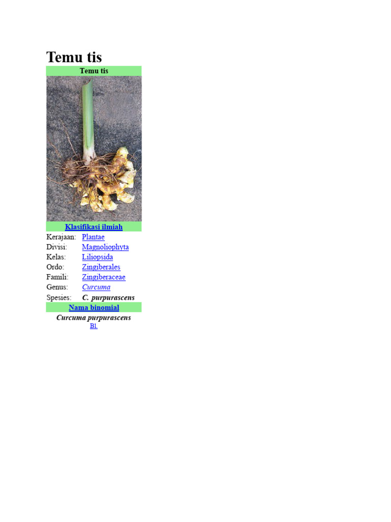 Klasifikasi Temu Tis (Curcuma purpurascens)