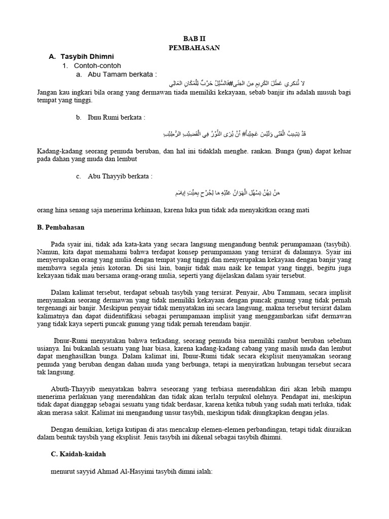 dalam bentuk taysbih yang eksplisit. Jenis tasybih ini dikenal sebagai tasybih dhimni.