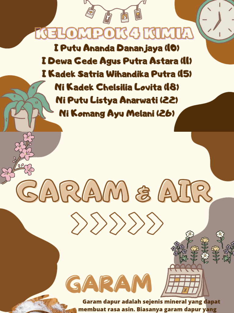 (NaCl) yang dihasilkan oleh air laut. Garam dalam