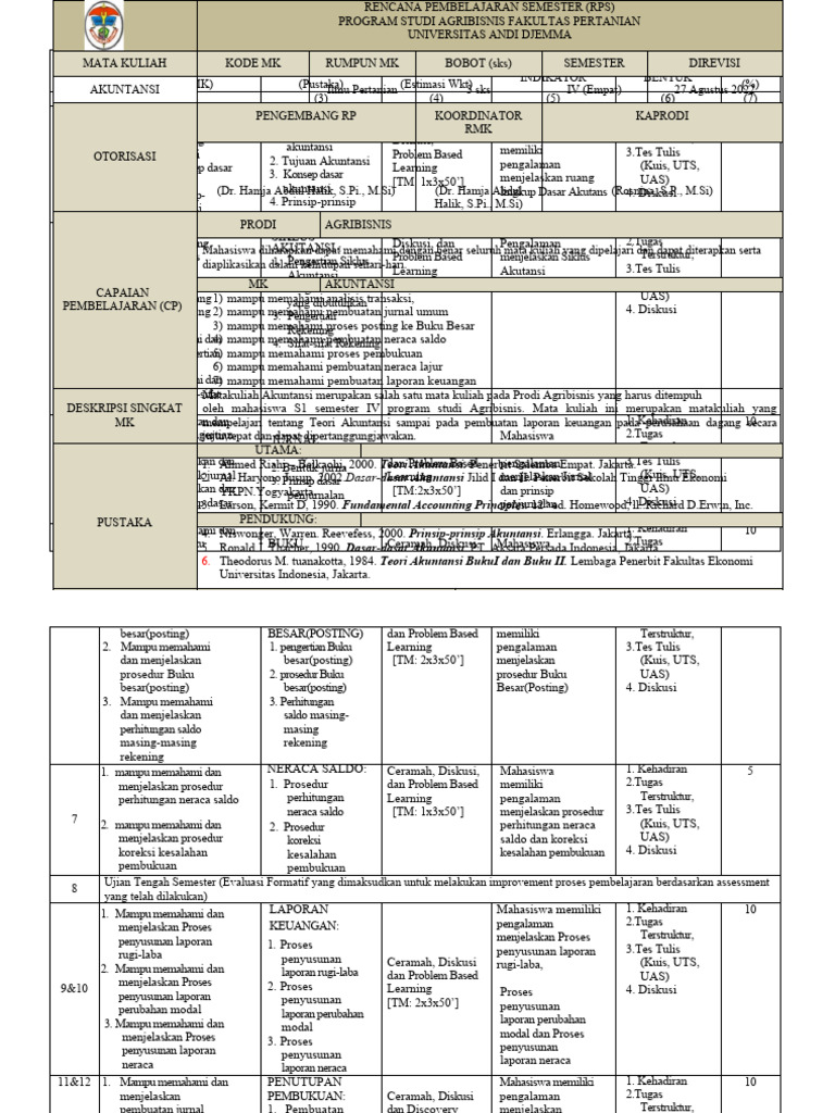 Matakuliah Akuntansi merupakan salah satu mata kuliah pada Prodi Agribisnis yang harus ditempuh