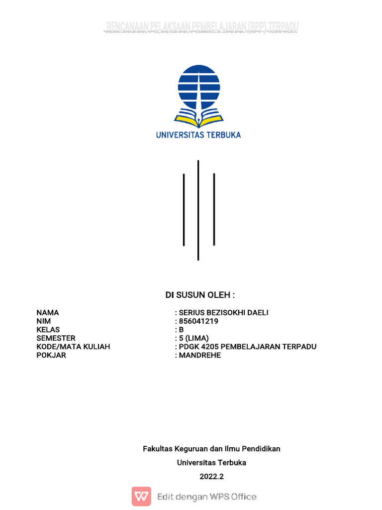 KODE/MATA KULIAH : PDGK 4205 PEMBELAJARAN TERPADU