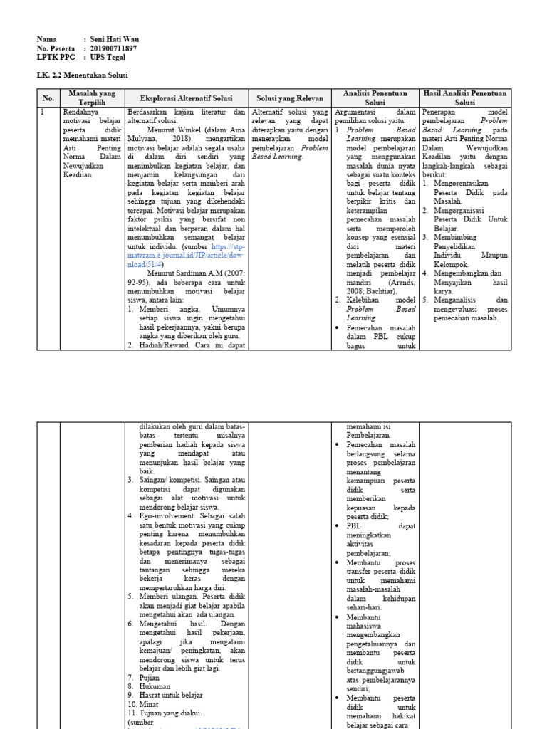 motivasi belajar alternatif solusi. relevan yang dapat pemilihan solusi yaitu: pembelajaran Problem