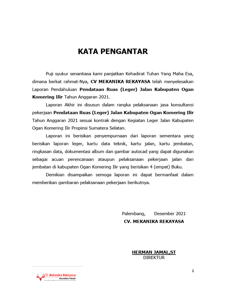 dimana berkat rahmat-Nya, CV MEKANIKA REKAYASA telah menyelesaikan