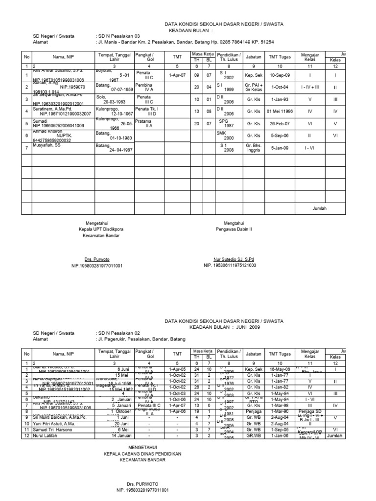 1 Panut Bantul, 6 Juni 1-Apr-05 24 10 Kep. Sek 16-May-06 I