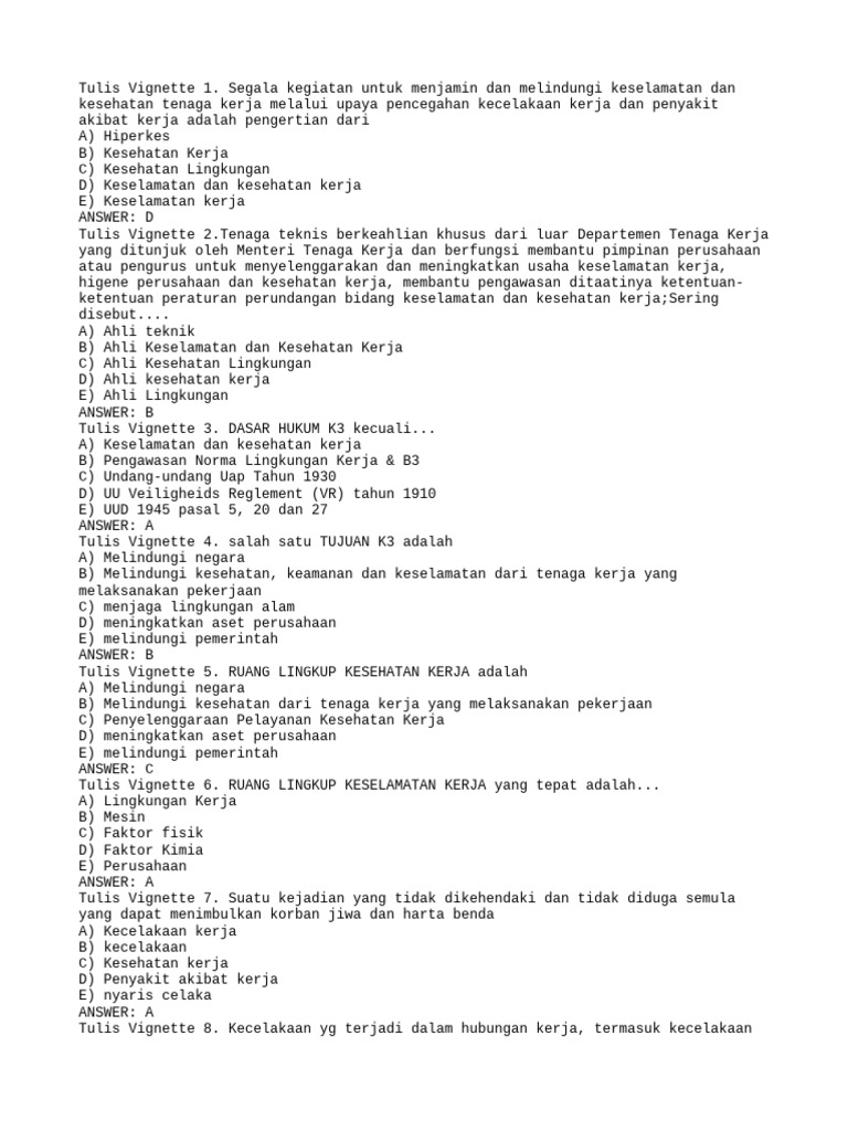 Tulis Vignette 6. RUANG LINGKUP KESELAMATAN KERJA yang tepat adalah...