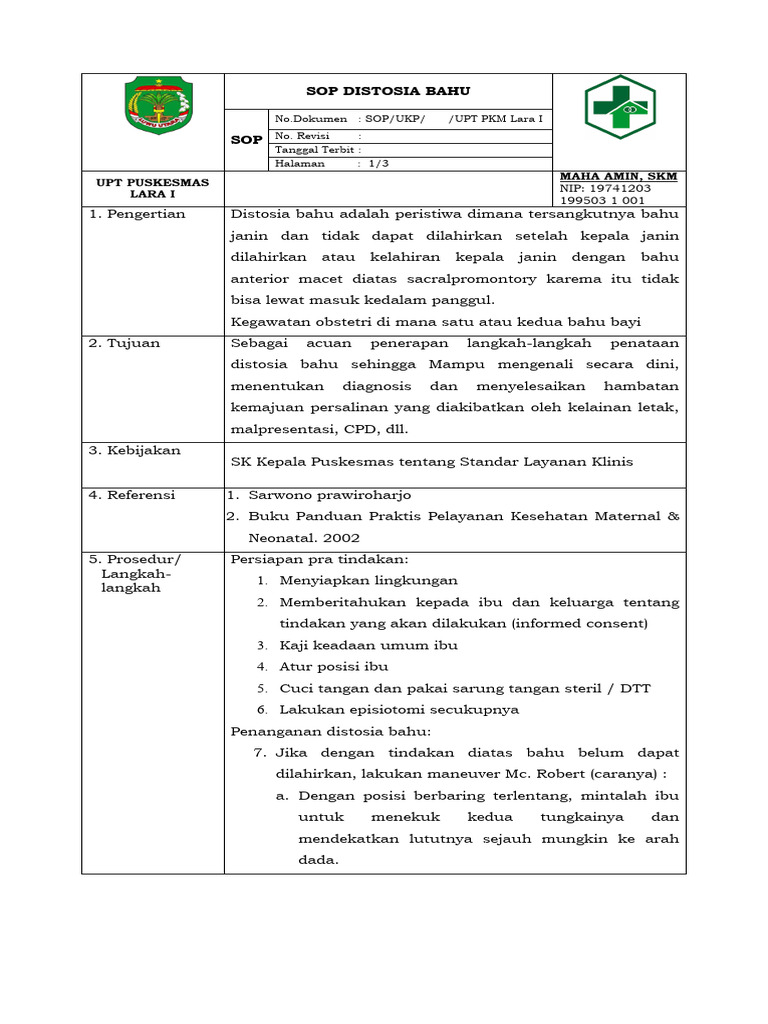 No.Dokumen : SOP/UKP/ /UPT PKM Lara I