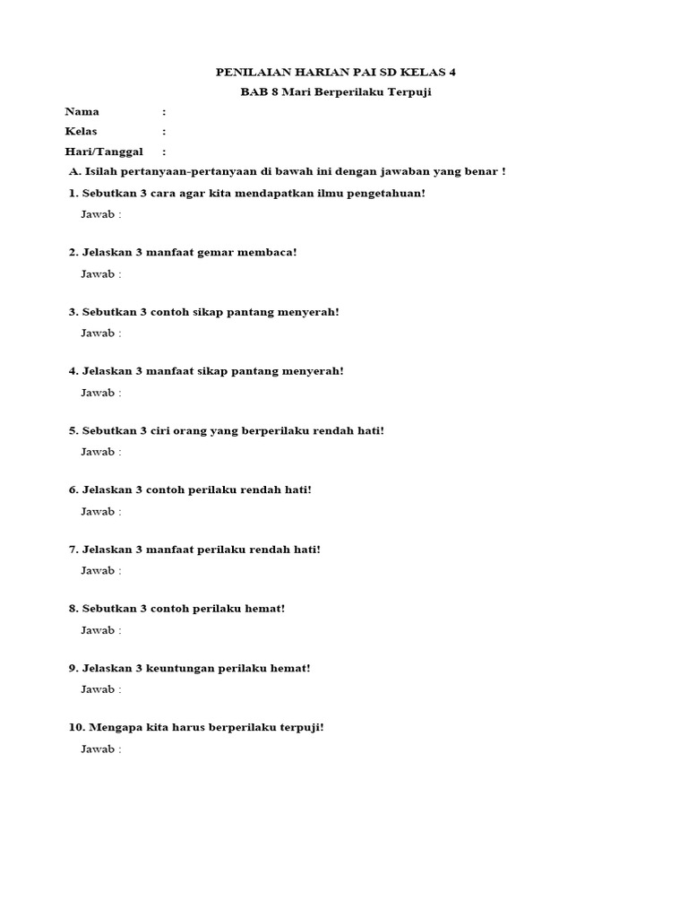 A. Isilah pertanyaan-pertanyaan di bawah ini dengan jawaban yang benar !