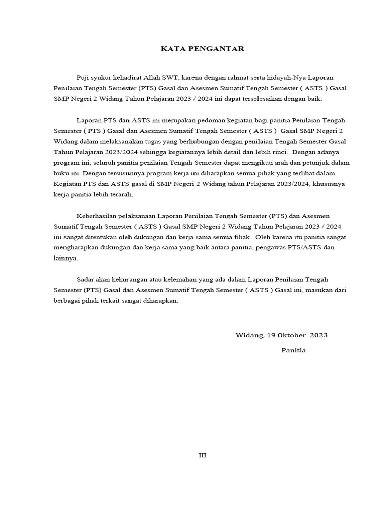 Laporan PTS dan ASTS ini merupakan pedoman kegiatan bagi panitia Penilaian Tengah