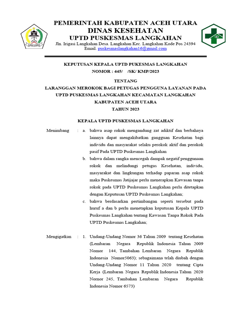 KEPUTUSAN KEPALA UPTD PUKESMAS LANGKAHAN
