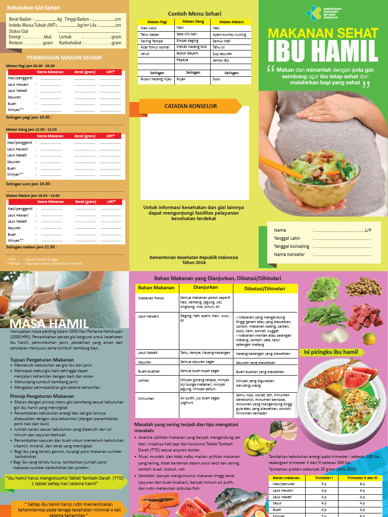 1 tablet setiap hari selama hamil” (sayuran dan buah-buahan), banyak minum air putih, Nasi/penukar 5p 6p