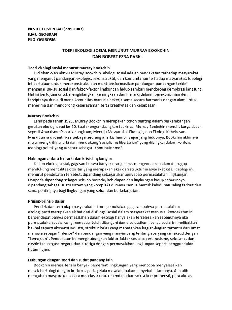 TOERI EKOLOGI SOSIAL MENURUT MURRAY BOOKCHIN
