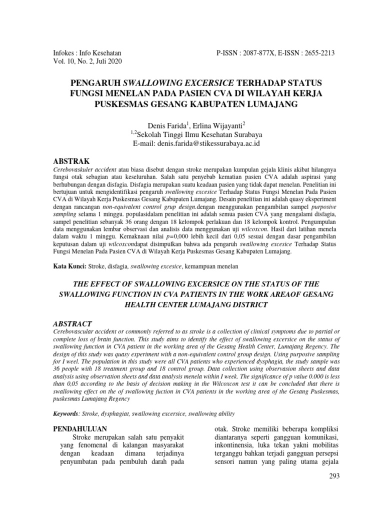 Kata Kunci: Stroke, disfagia, swallowing excesice, kemampuan menelan