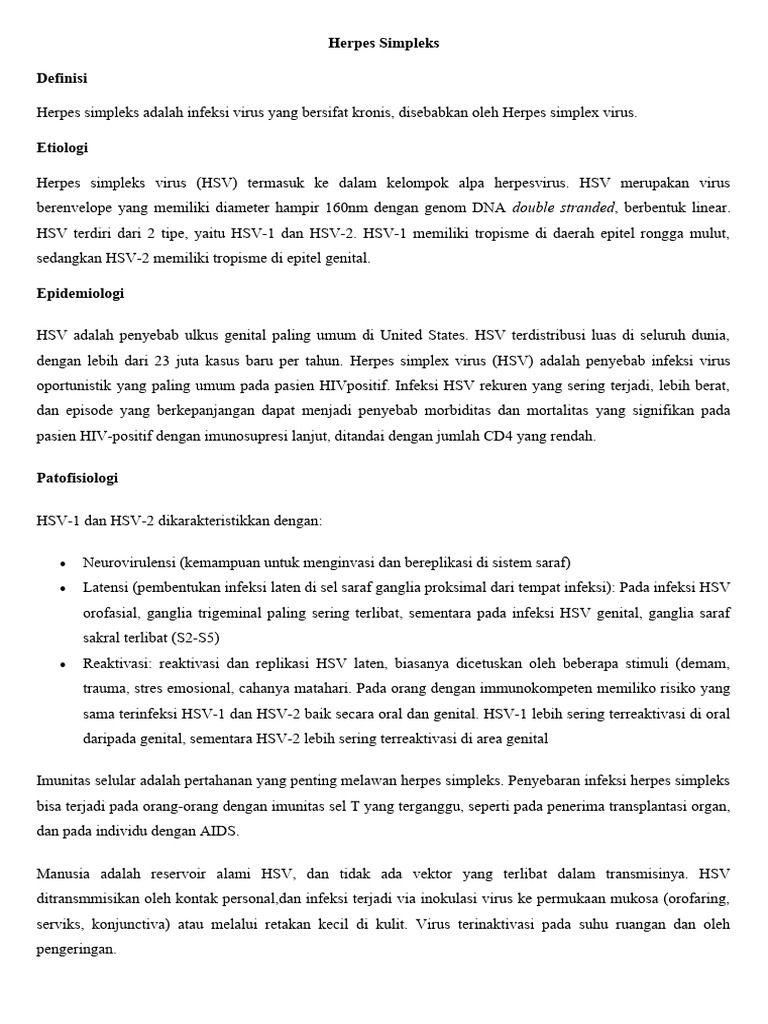 Herpes simpleks adalah infeksi virus yang bersifat kronis, disebabkan oleh Herpes simplex virus.