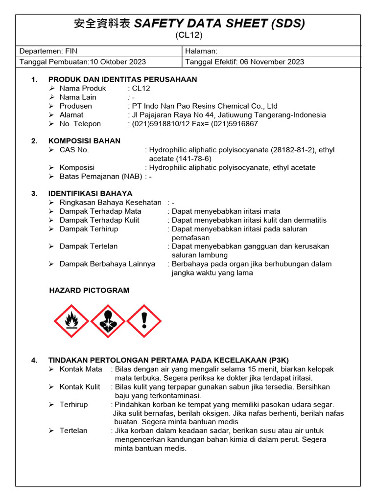 Komposisi : Hydrophilic aliphatic polyisocyanate, ethyl acetate