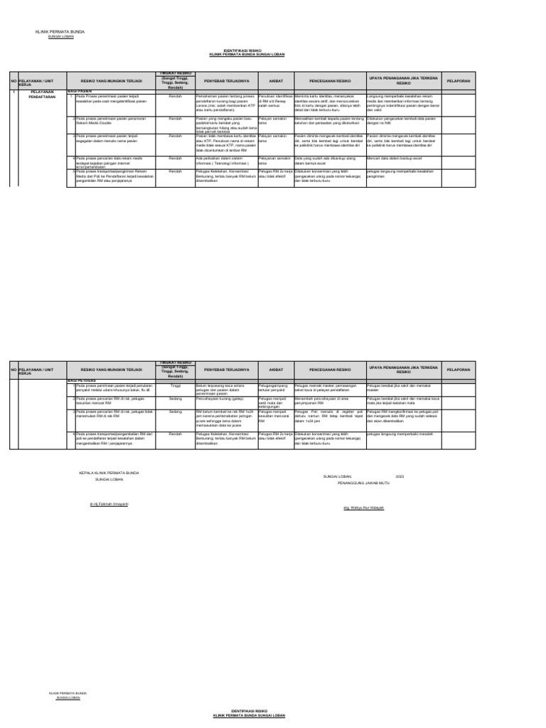 NO PELAYANAN / UNIT KERJA RESIKO YANG MUNGKIN TERJADI PENYEBAB TERJADINYA AKIBAT PENCEGAHAN RESIKO PELAPORAN