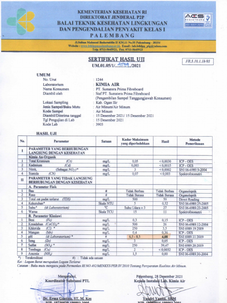 Sertifikat Unilab Registrasi KLHK 2020 - 2025