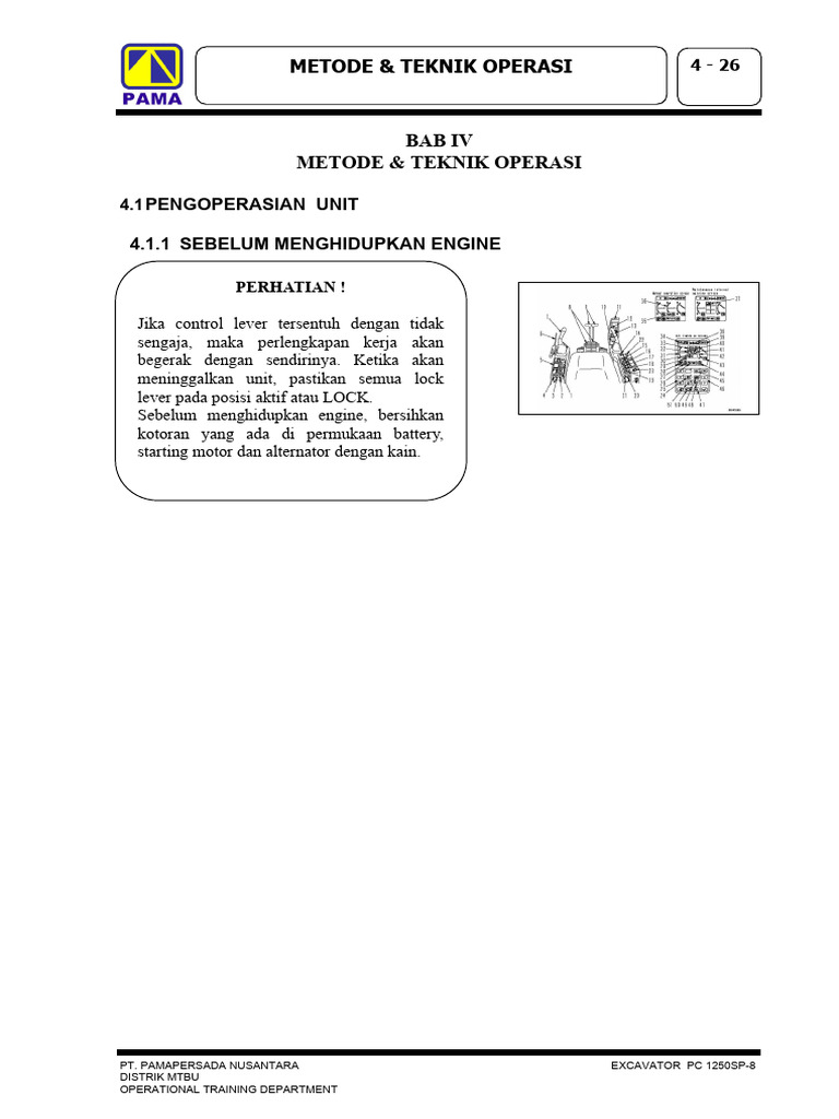 Sebelum menghidupkan engine, pastikan control