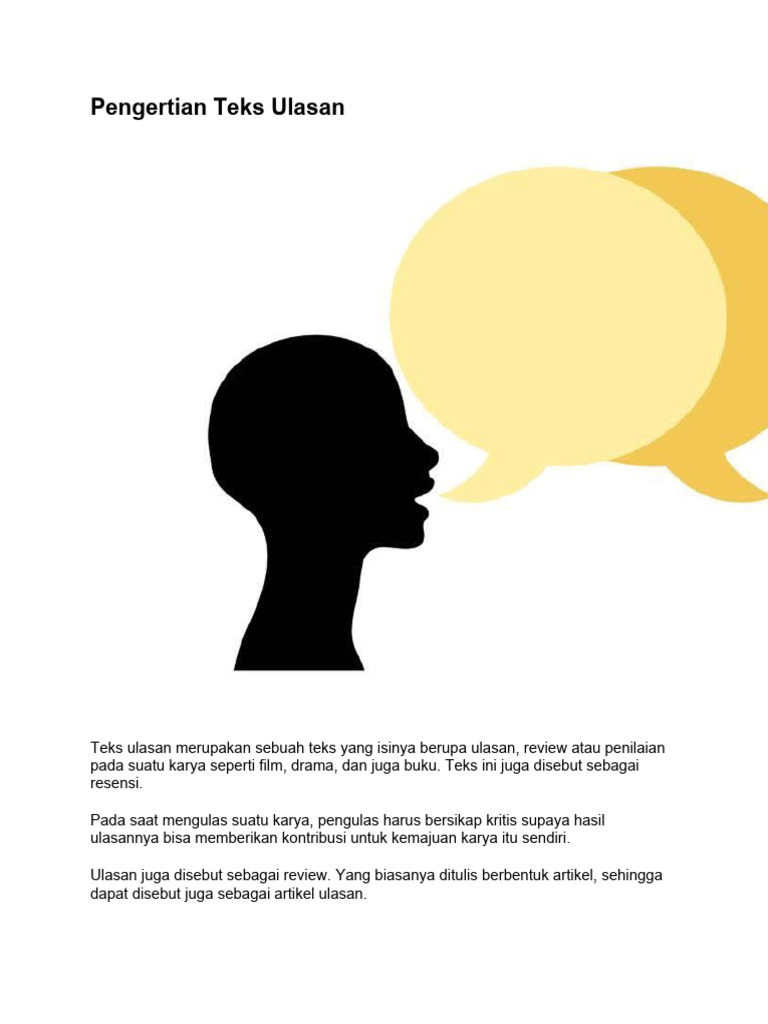 Teks ulasan merupakan sebuah teks yang isinya berupa ulasan, review atau penilaian