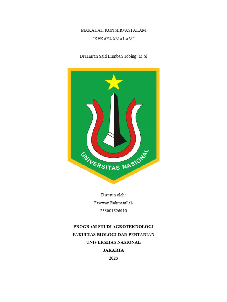 alam lainnya yang terkandung di dalam bumi Indonesia.Kekayaan sumber daya alam