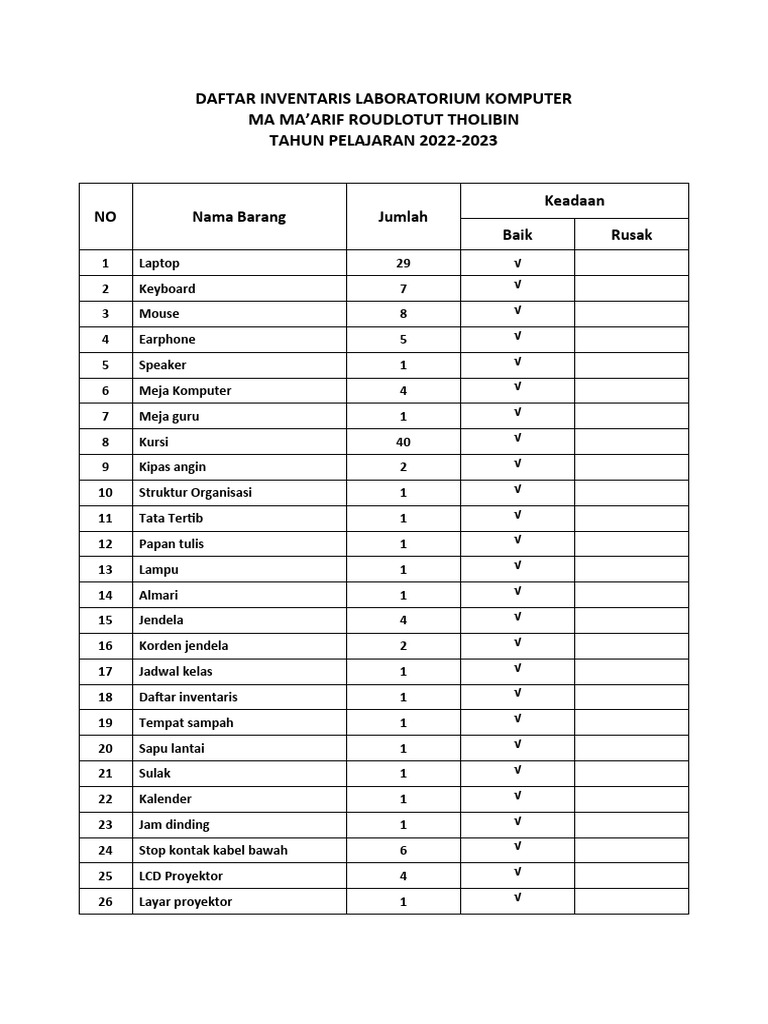 DAFTAR INVENTARIS LABORATORIUM KOMPUTER