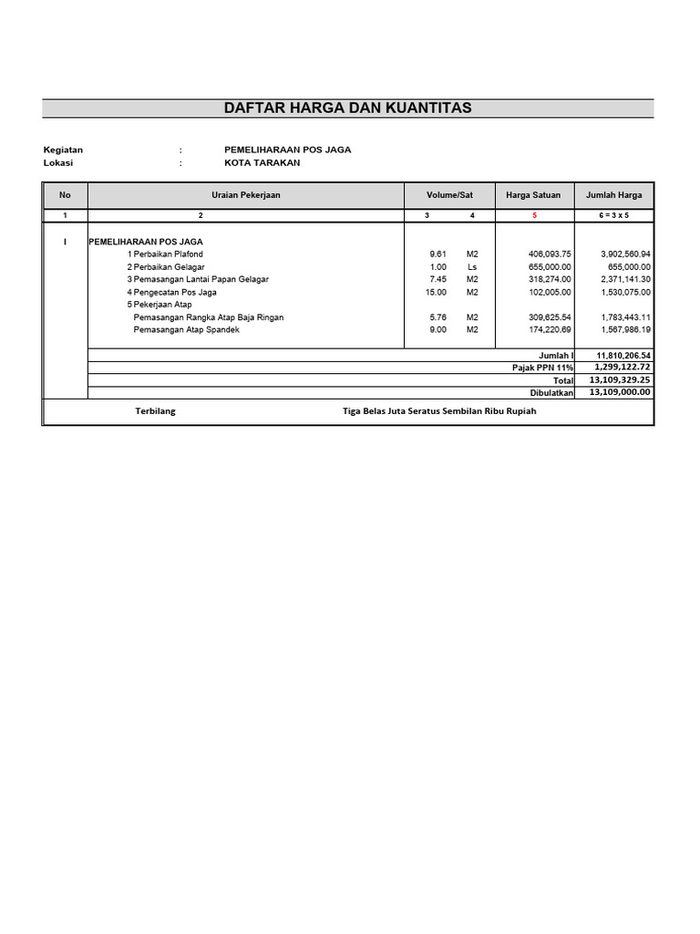 DAFTAR HARGA DAN KUANTITAS