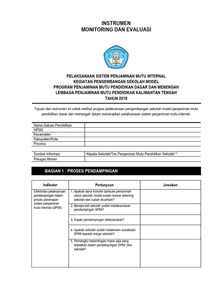 Tujuan dari instrumen ini untuk melihat progres pelaksanaan pengembangan sekolah model penjaminan mutu
