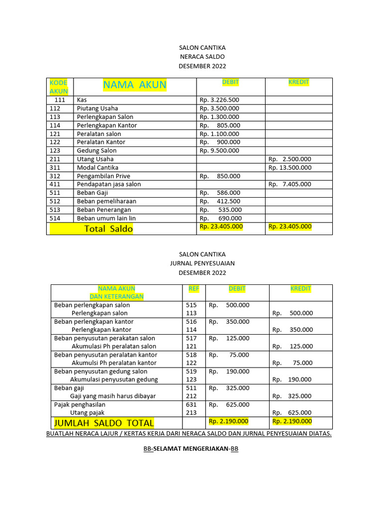 BUATLAH NERACA LAJUR / KERTAS KERJA DARI NERACA SALDO DAN JURNAL PENYESUAIAN DIATAS.