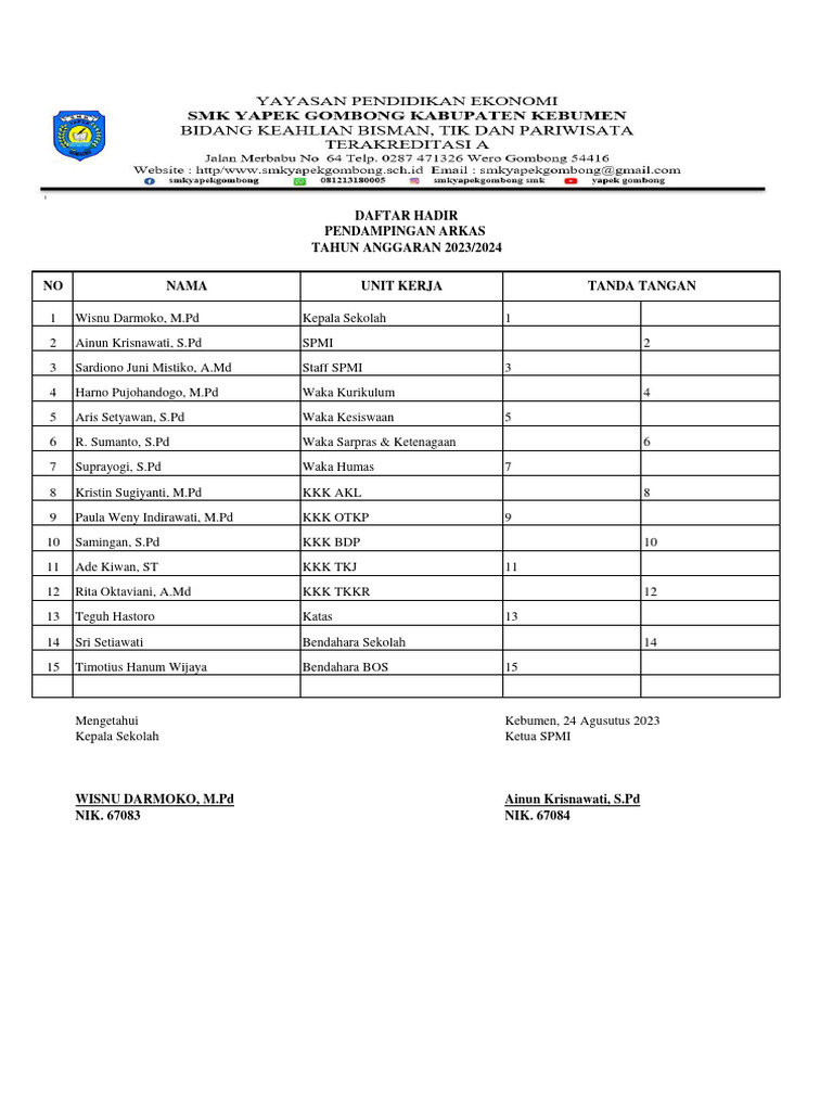 1 Wisnu Darmoko, M.Pd Kepala Sekolah 1