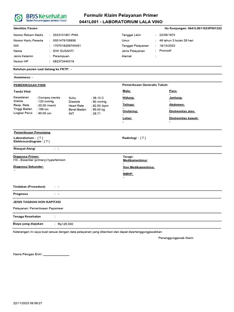Identitas Pasien No Kunjungan: 0441L0011023P001322