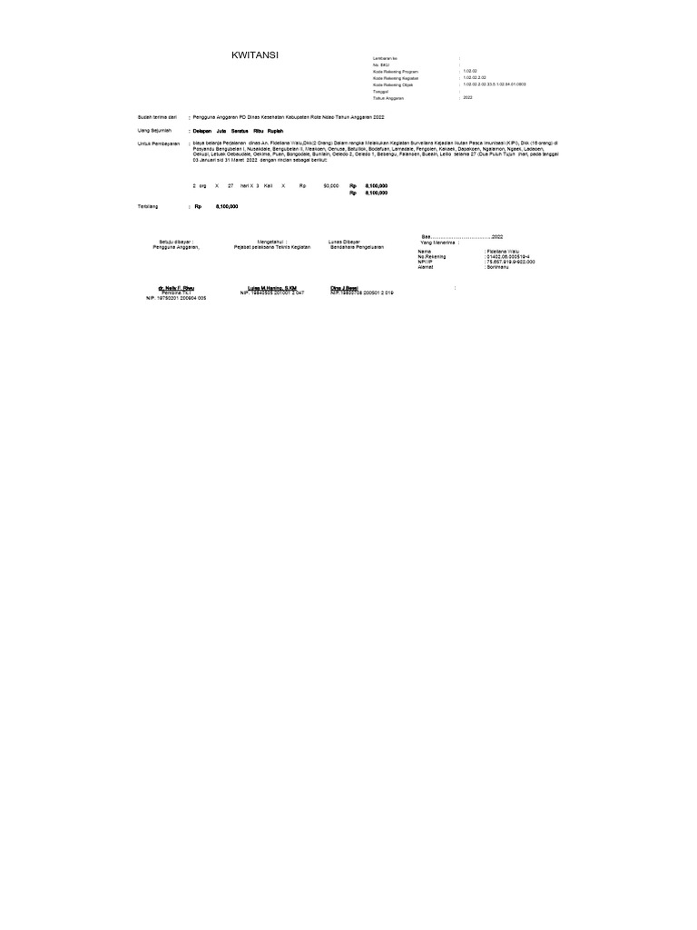 Nuraeni M.Arsyad 2503401102 / 955594775922000 095/6103/BOK-DINKES 3.2 Rp 200,000