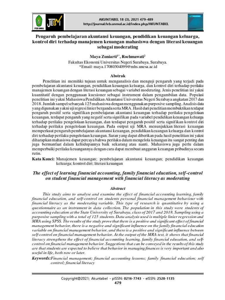 Kata Kunci: Manajemen keuangan; pembelajaran akuntansi keuangan; pendidikan keuangan