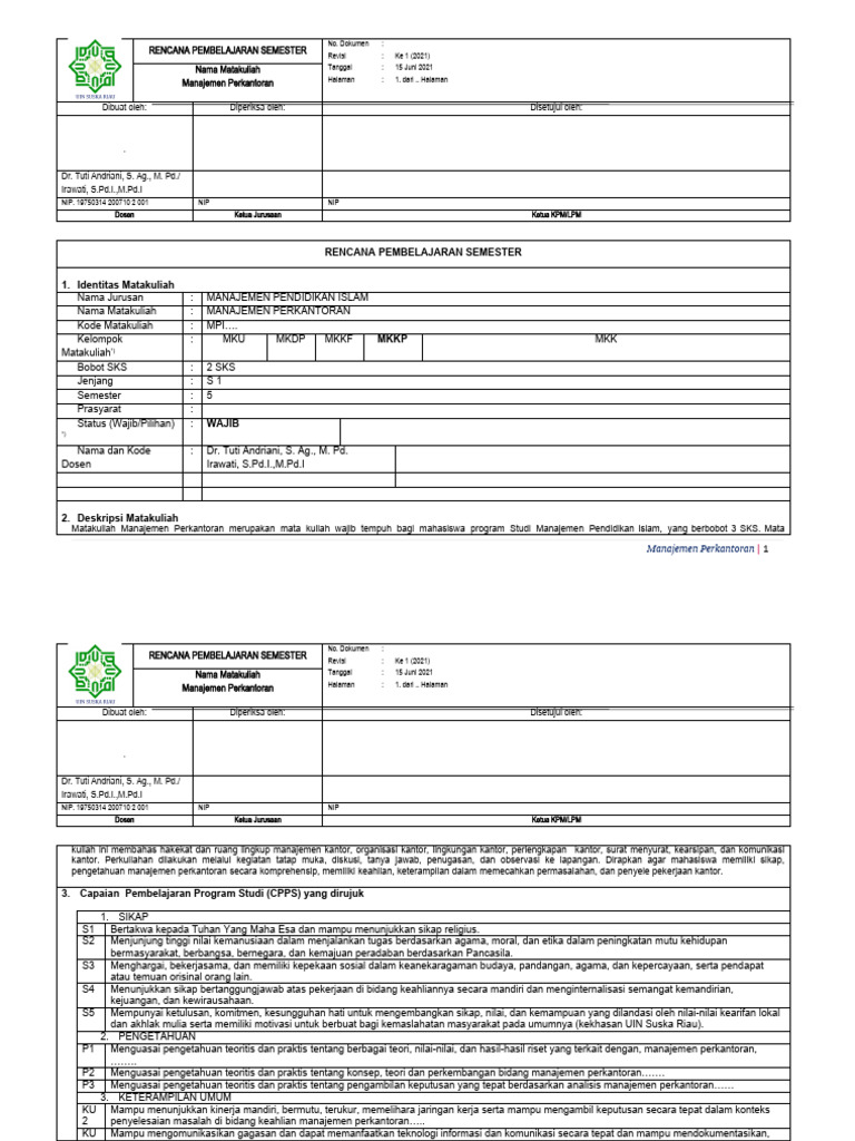 Matakuliah Manajemen Perkantoran merupakan mata kuliah wajib tempuh bagi mahasiswa program Studi Manajemen Pendidikan Islam, yang berbobot 3 SKS. Mata