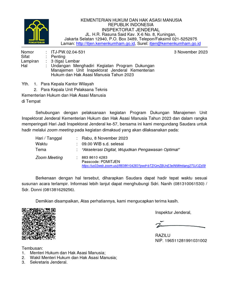 Nomor : ITJ-PW.02.04-531 3 November 2023