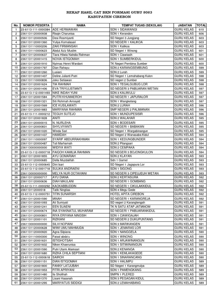 REKAP HASIL CAT BKN FORMASI GURU 2023