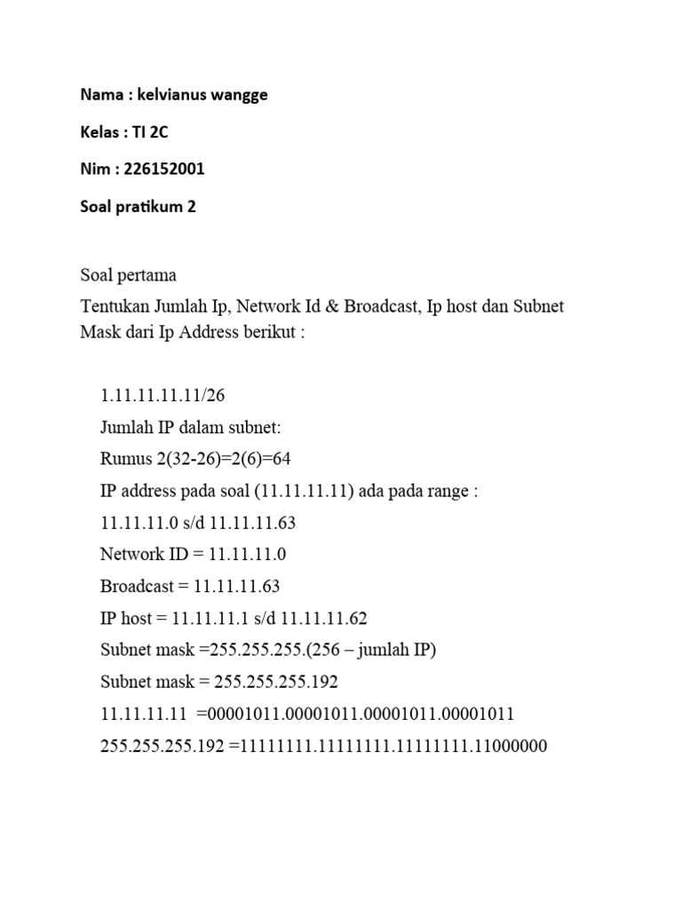 Tentukan Jumlah Ip, Network Id & Broadcast, Ip host dan Subnet