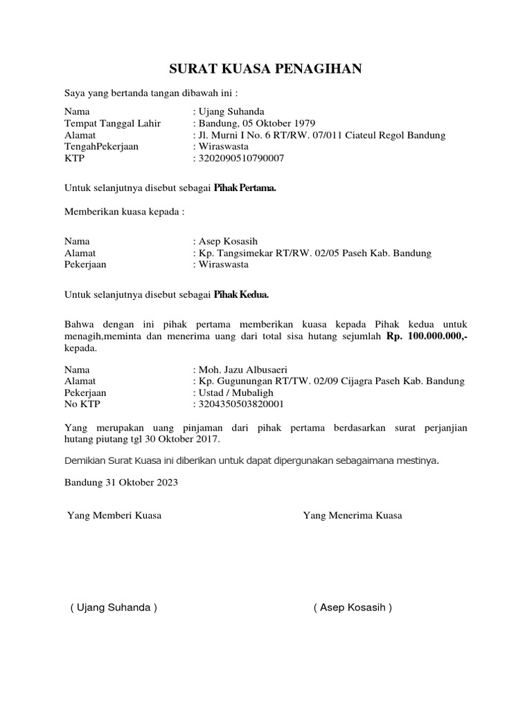 SURAT KUASA PENAGIHAN
