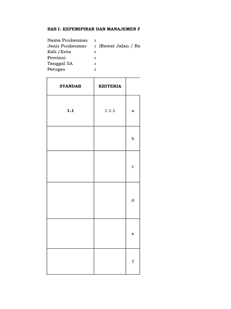 di Pukesmas, serta terpelihara sesuai dengan prosedur 0 Isi Dokumen