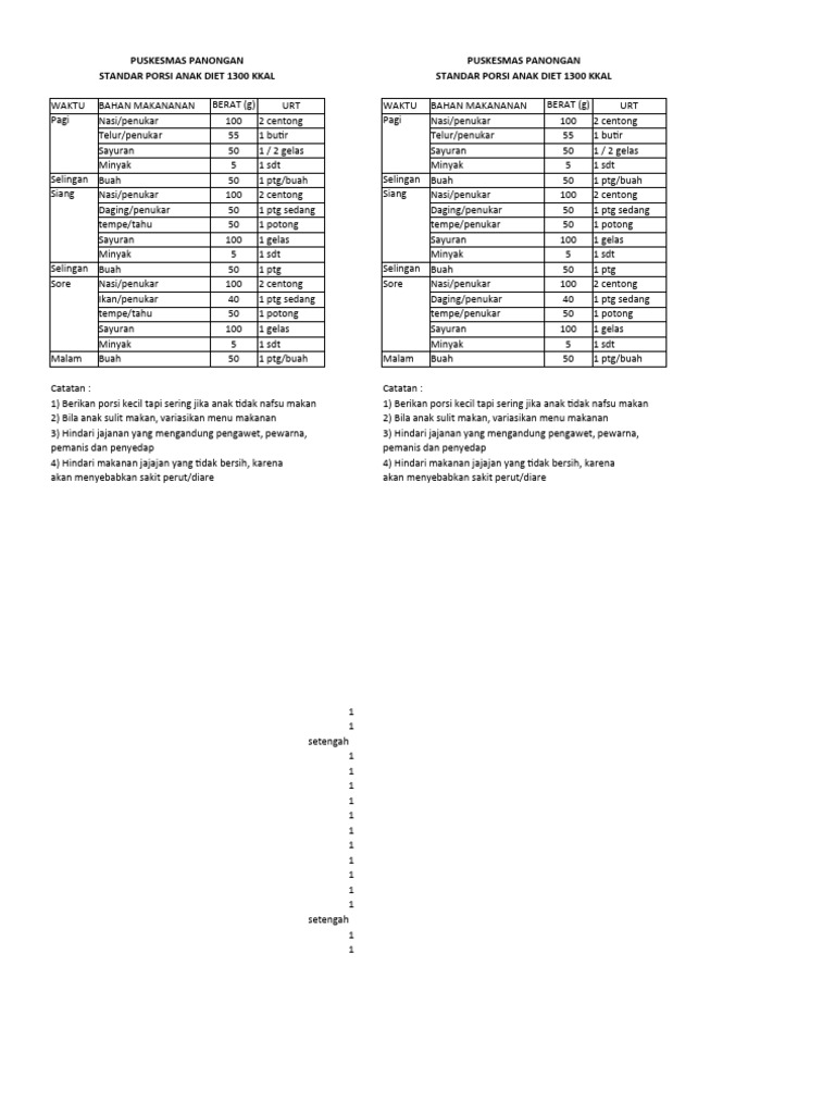 STANDAR PORSI ANAK DIET 1300 KKAL STANDAR PORSI ANAK DIET 1300 KKAL