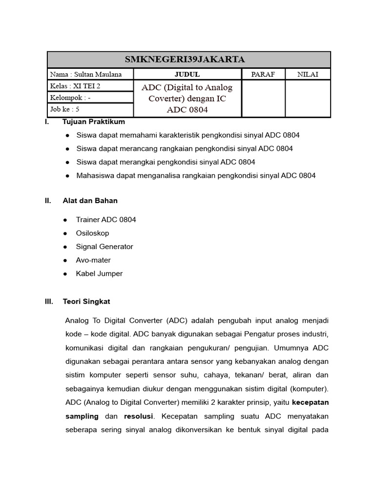 Kelas : XI TEI 2 ADC (Digital to Analog
