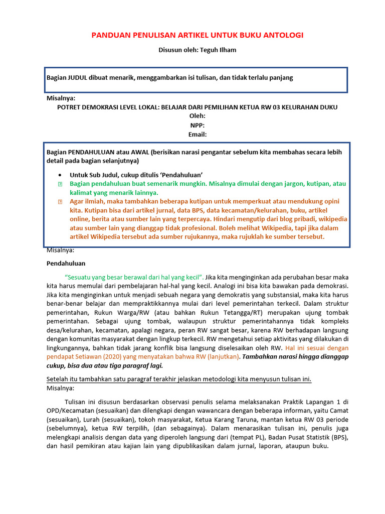 PANDUAN PENULISAN ARTIKEL UNTUK BUKU ANTOLOGI