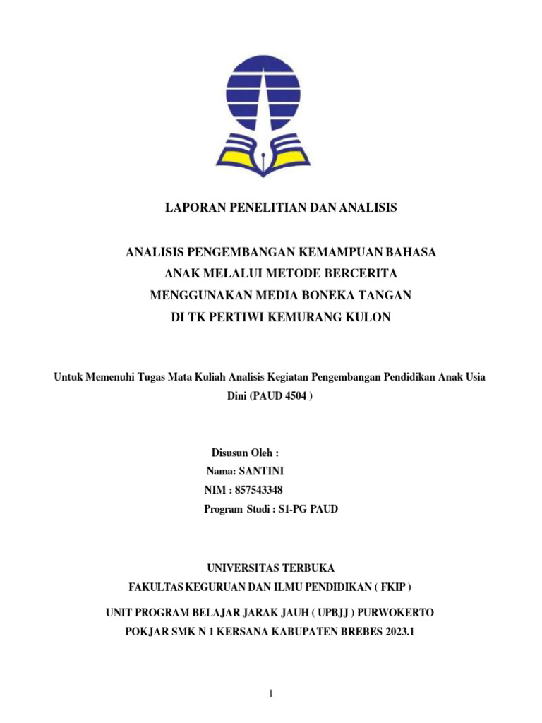 Untuk Memenuhi Tugas Mata Kuliah Analisis Kegiatan Pengembangan Pendidikan Anak Usia