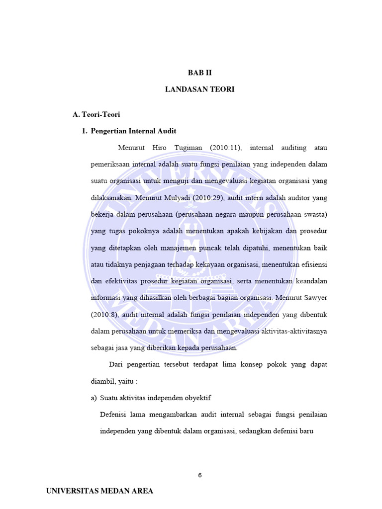 (2010:8), audit internal adalah fungsi penilaian independen yang dibentuk