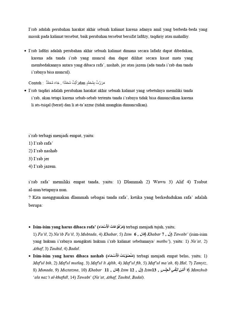 I’rab adalah perubahan harakat akhir sebuah kalimat karena adanya amil yang berbeda-beda yang