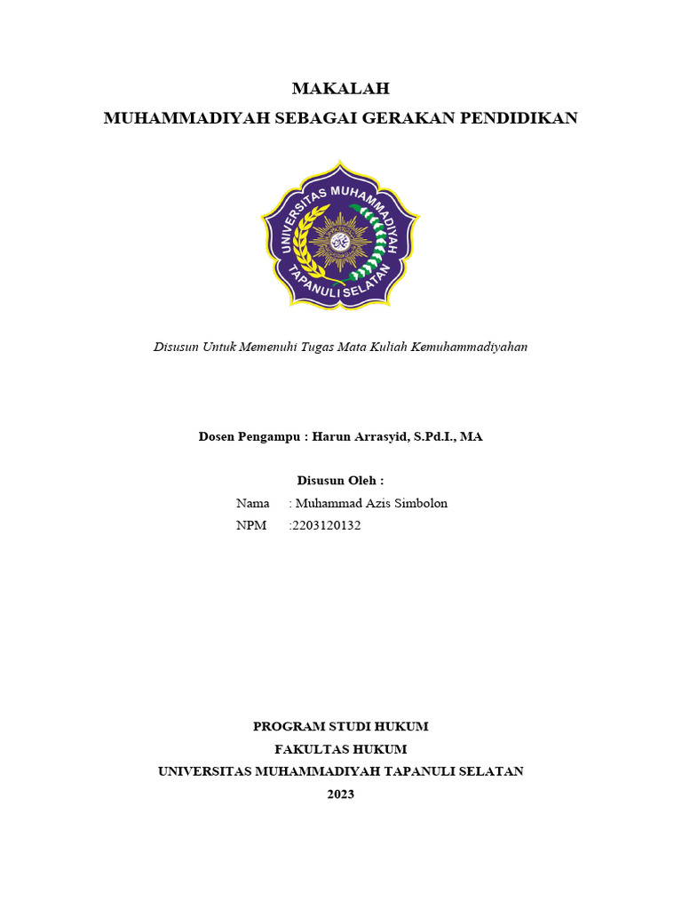 MUHAMMADIYAH SEBAGAI GERAKAN PENDIDIKAN
