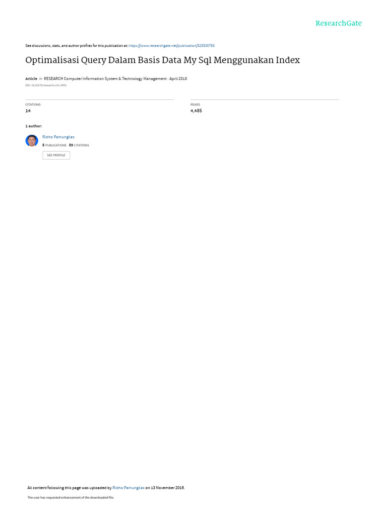 Kata kunci: Optimalisasi, MySQL, Index.