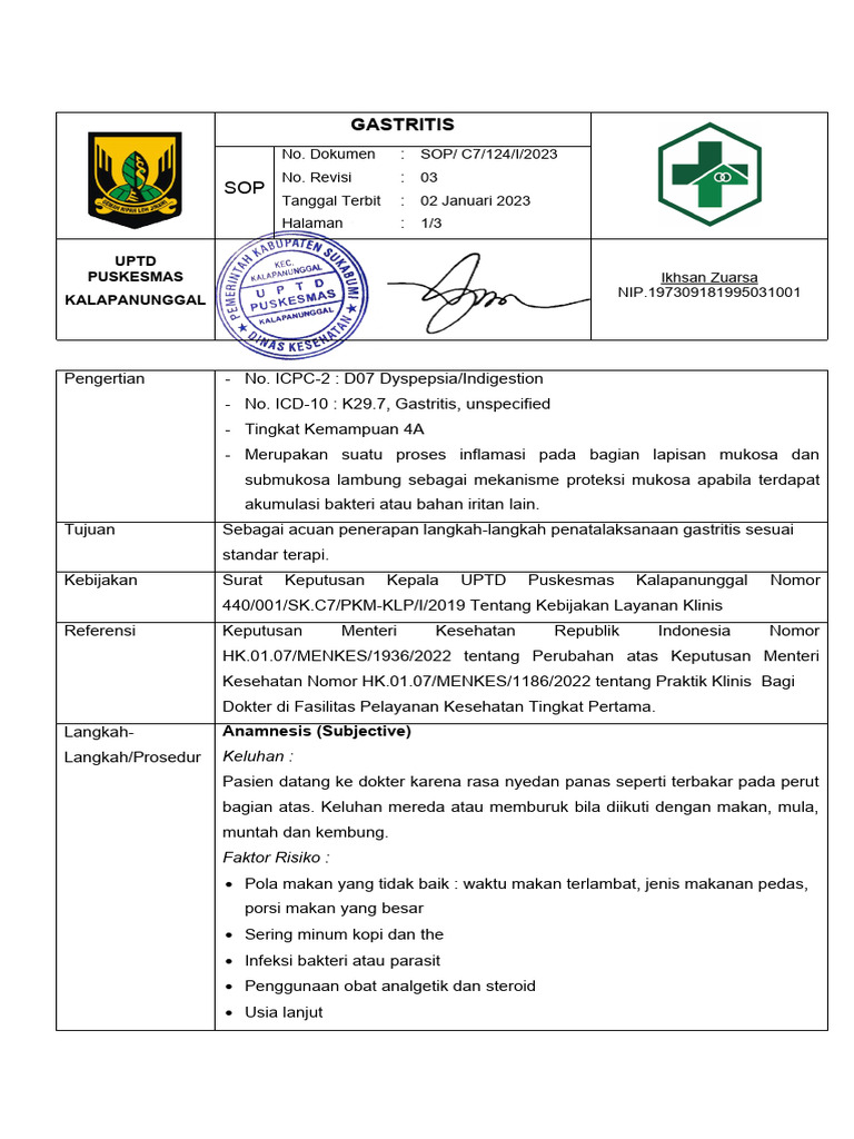 Tujuan Sebagai acuan penerapan langkah-langkah penatalaksanaan gastritis sesuai