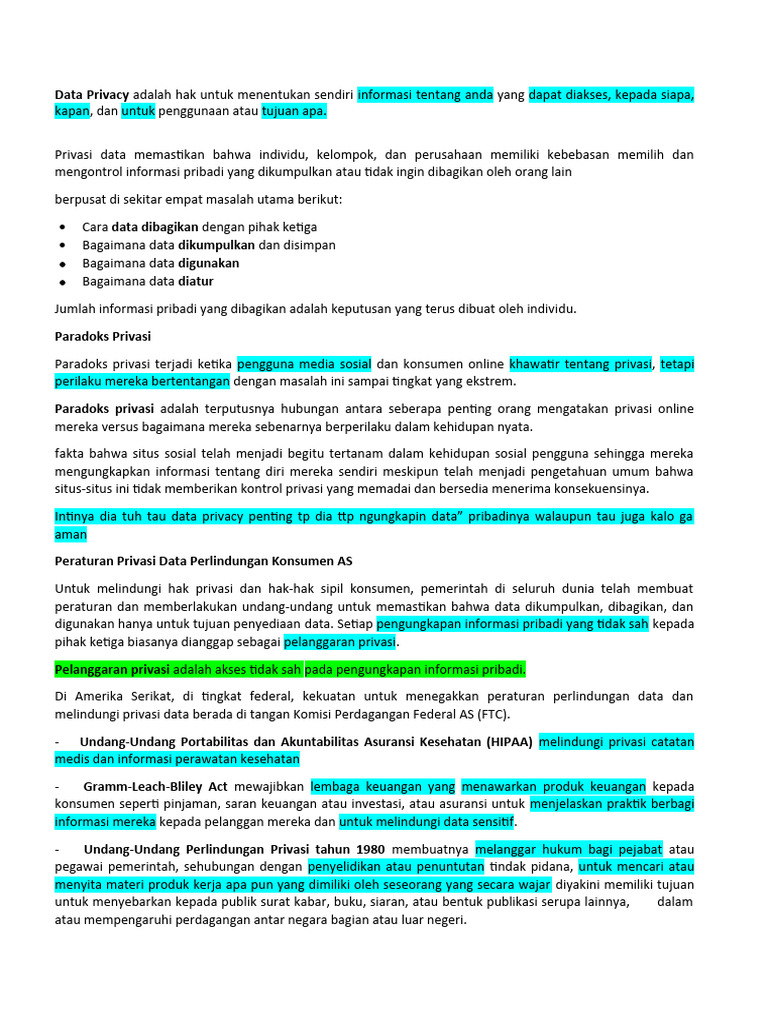 Data Privacy adalah hak untuk menentukan sendiri informasi tentang anda yang dapat diakses, kepada siapa,