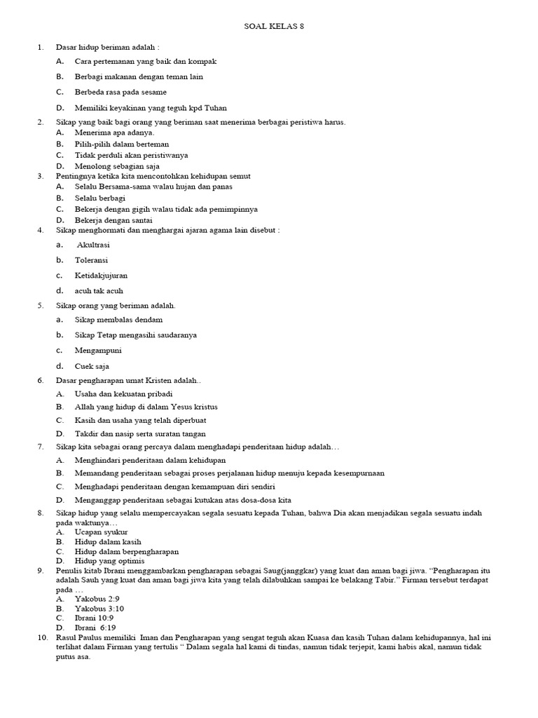 D. Memiliki keyakinan yang teguh kpd Tuhan